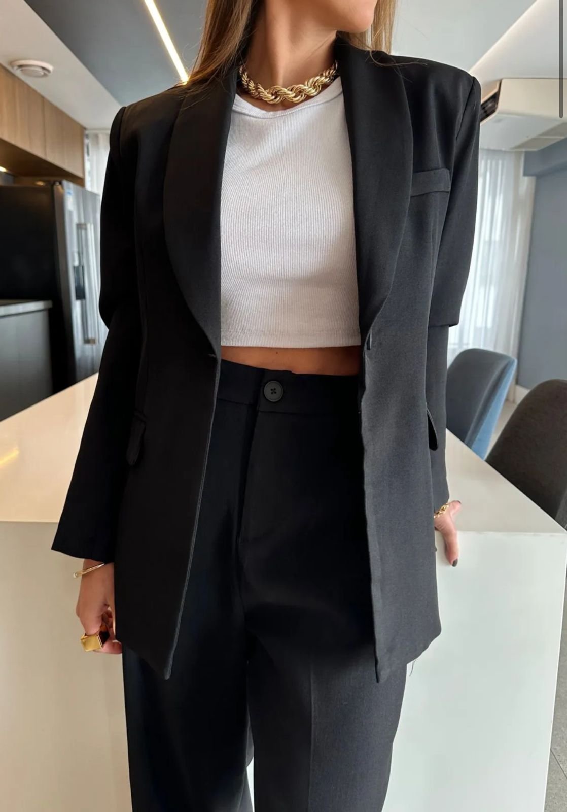 Ideal para compor produções formais ou fashionistas, este conjunto é perfeito para quem busca moda feminina contemporânea com um toque de alfaiataria moderna.
