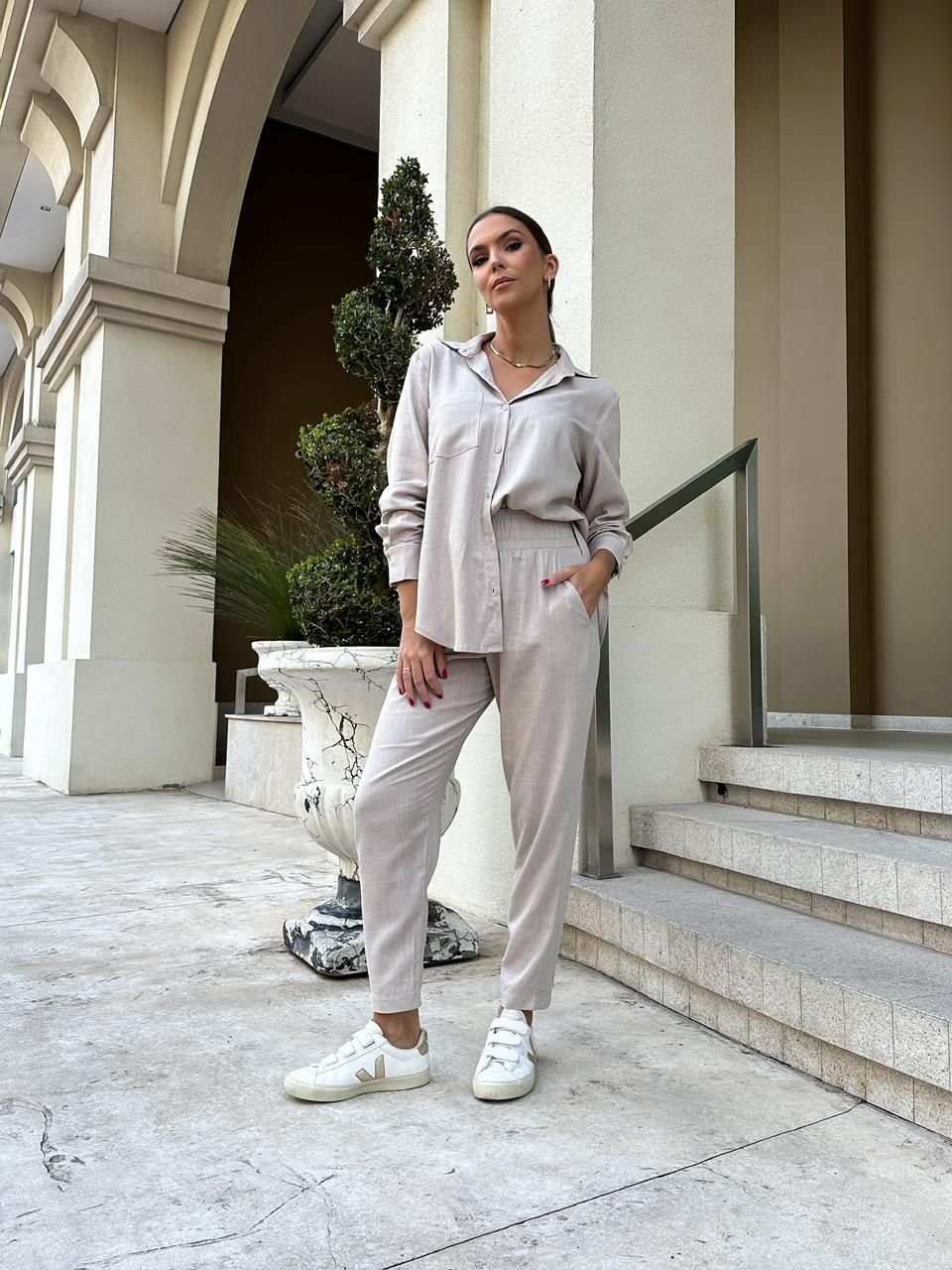 Transitando entre elegância e praticidade, o Conjunto Camisa e Calça Linho é uma escolha refinada para qualquer ocasião. Com uma camisa ampla que apresenta botões frontais, bolso e punho detalhado com botão, e uma calça com elástico e bolsos frontais, este conjunto combina perfeitamente estilo e conforto, garantindo um visual impecável com facilidade.