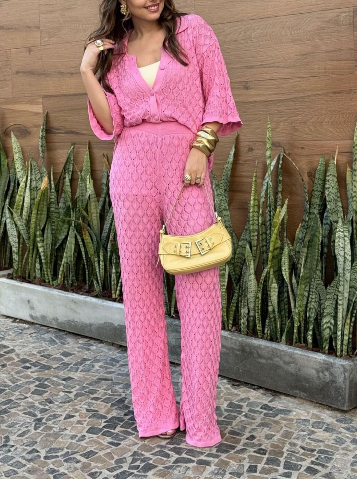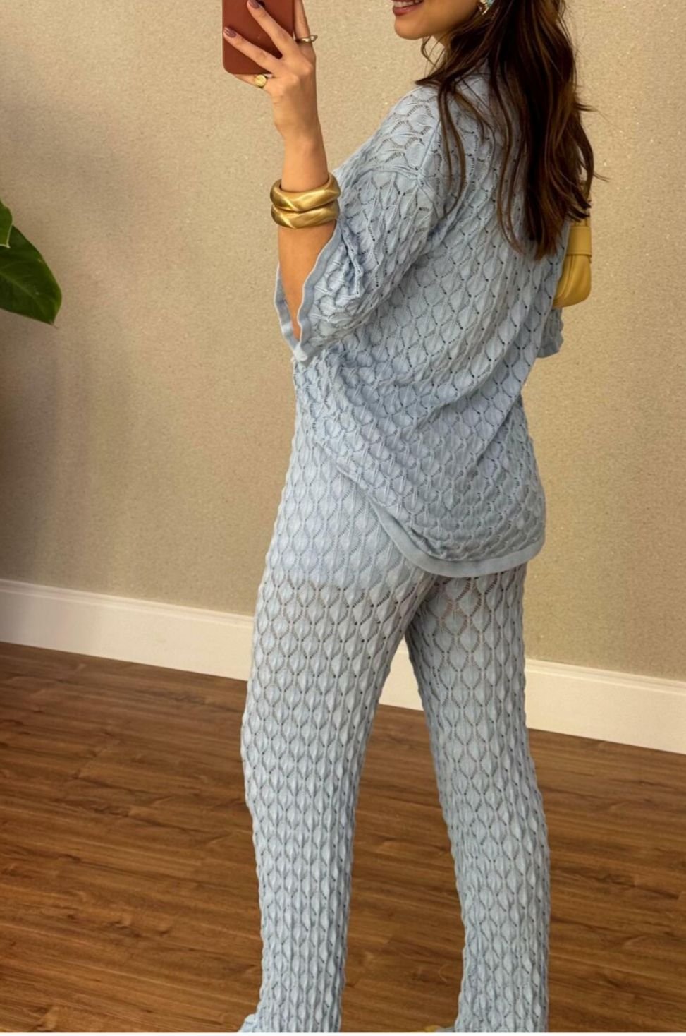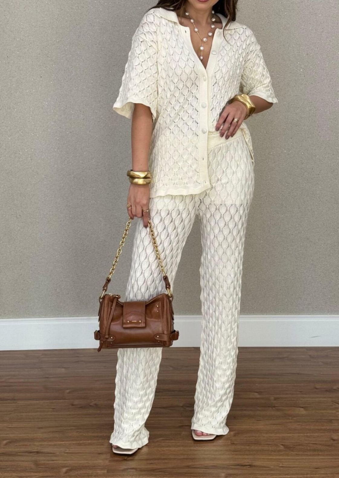 Conjunto Feminino em Tricot com Camisa e Calça Flare – Leve, Sofisticado e Atemporal